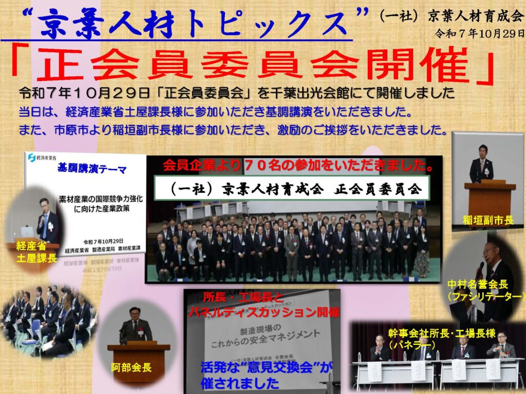 正会員委員会には経済産業省製造産業局素材産業課土屋課長、市原市稲垣副市長、関係団体、京葉人材育成会会員である京葉臨海コンビナート各社の所長・工場長他、総勢約70名の皆様にご出席いただきました。